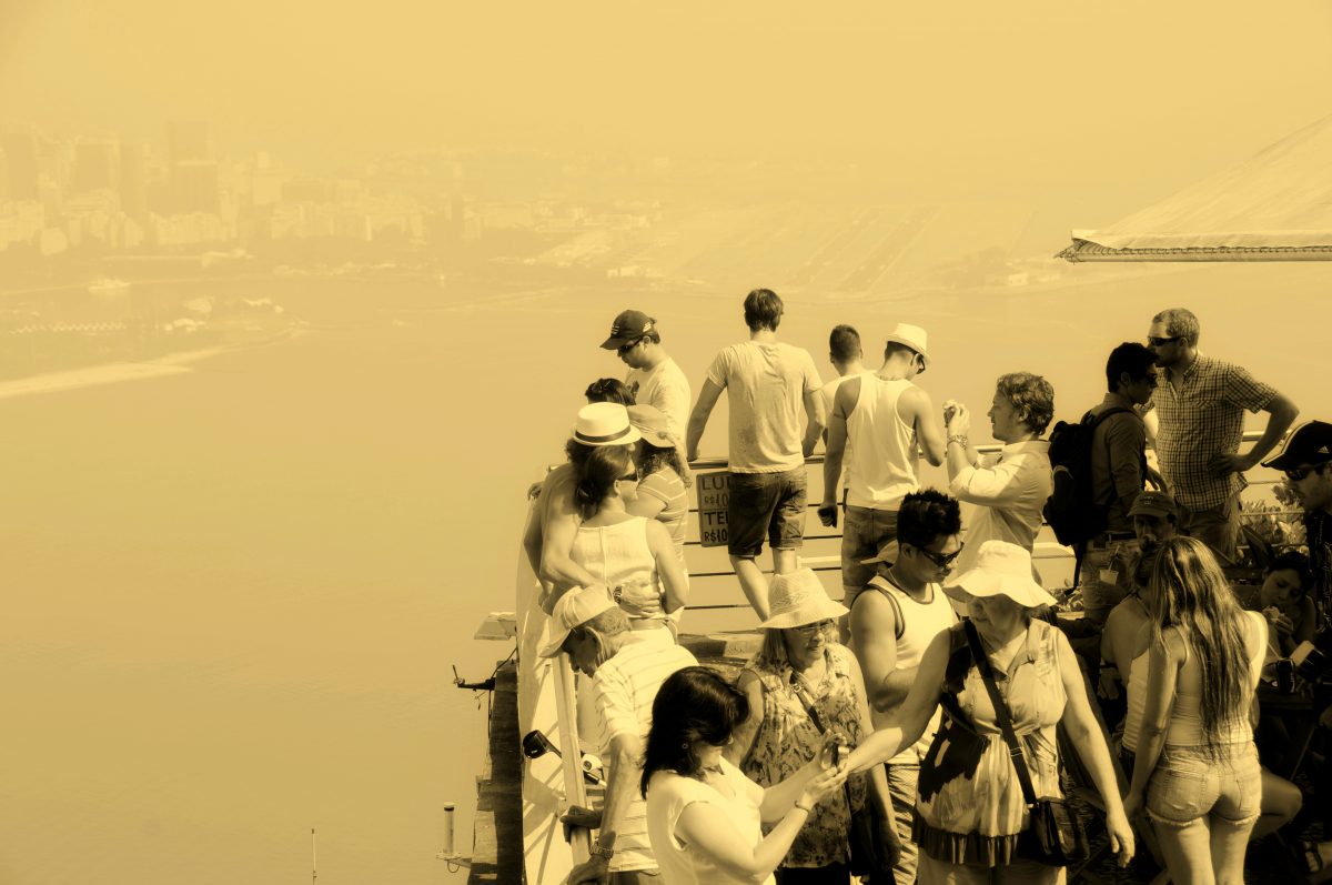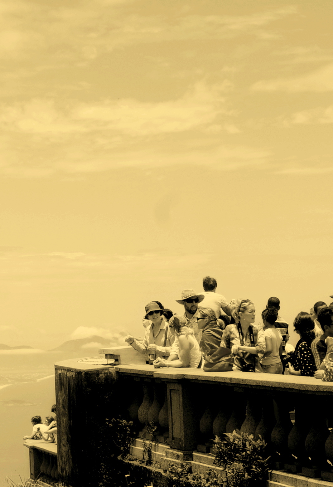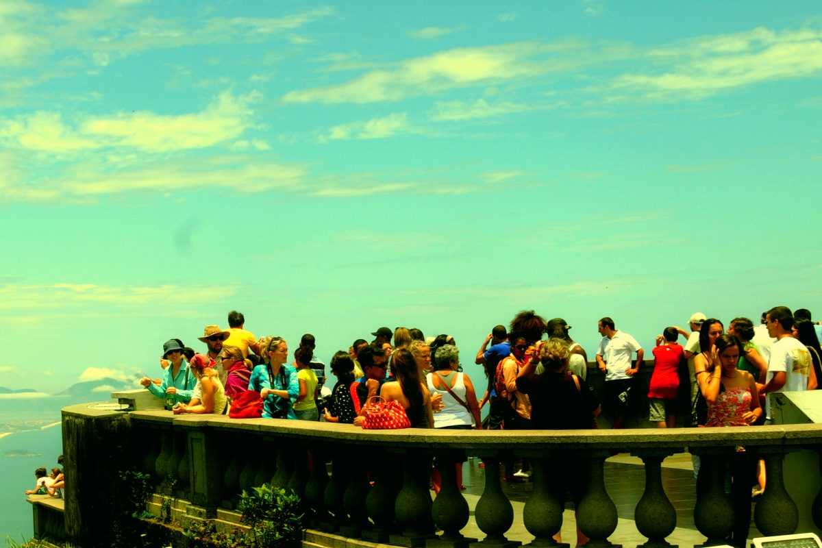 Aber ob sie es wollen oder nicht, auf diesem Bild sind sie „sein Volk“, das sich hier zu seinen Füssen munter tummelt, mal hoch, mal runter geht, mal hierhin und dahin schaut, mal Selfies macht oder die Aussicht genießt, vor allem aber ihn selbst, den mächtigen Schutzpatron und Erlöser fotografiert oder einfach nur ihn anschaut, um seine Gedanken zu lesen: nimmt er mich überhaupt wahr?